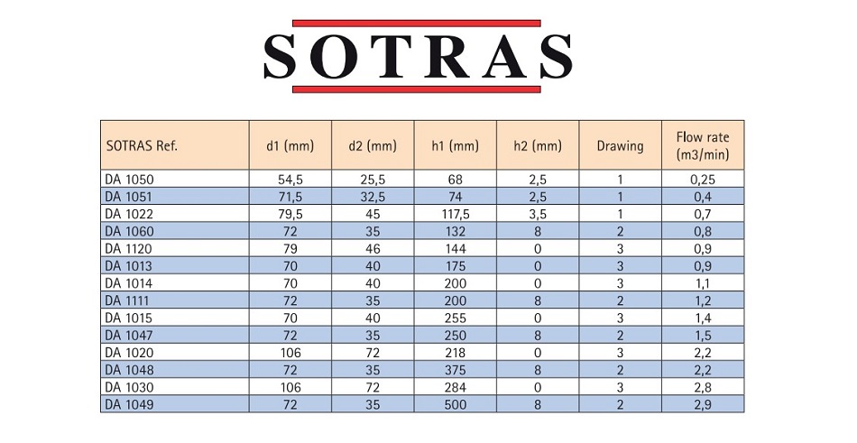 Bảng tra mã và thông số lọc tách dầu Sotras, Model DA: